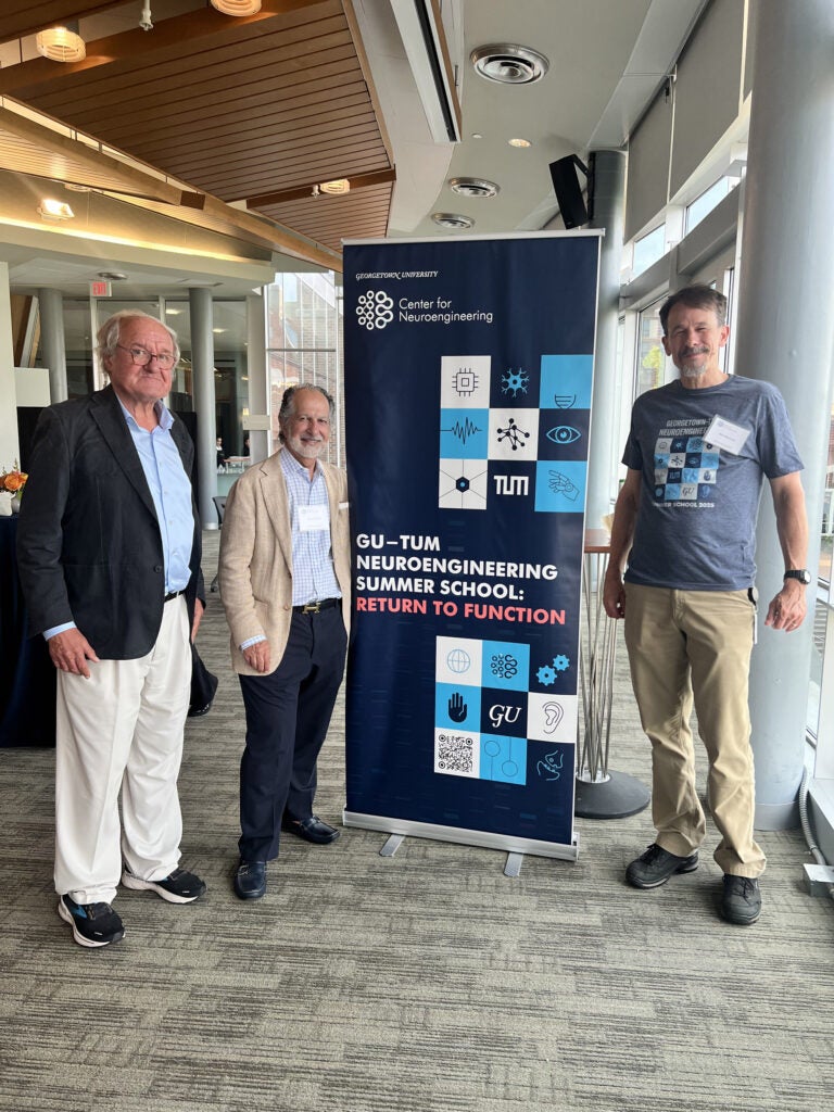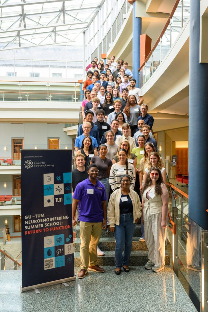The third annual GU-TUM summer school in neuroengineering was held in June, 2025, at Georgetown University in Washington, DC. The topic for this year’s event was “Neuroengineering for Return to Function”. Speakers from Georgetown, Technical University of Munich (TUM), Lawrence Livermore National Laboratory, NIH, Johns Hopkins and University of California San Francisco joined 60+ students from across the US and abroad for a series of talks on neuroengineering for return to function, student poster presentations, student workshops, and panels on neuroethics and the clinical applications of neuroengineering.